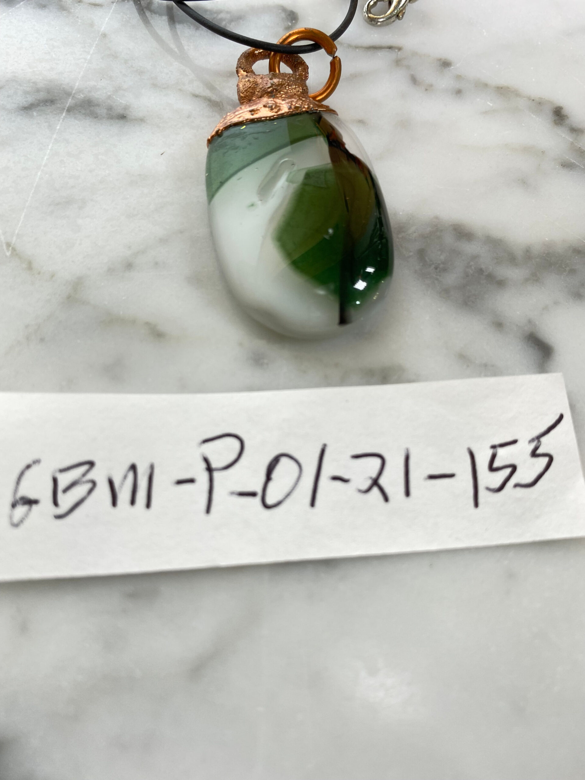 Electroformed Copper Pendant White With Green Accents Fused Glass