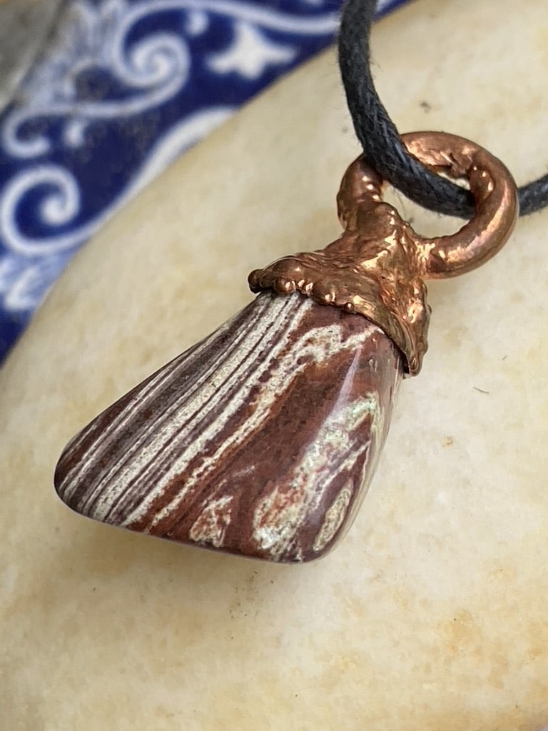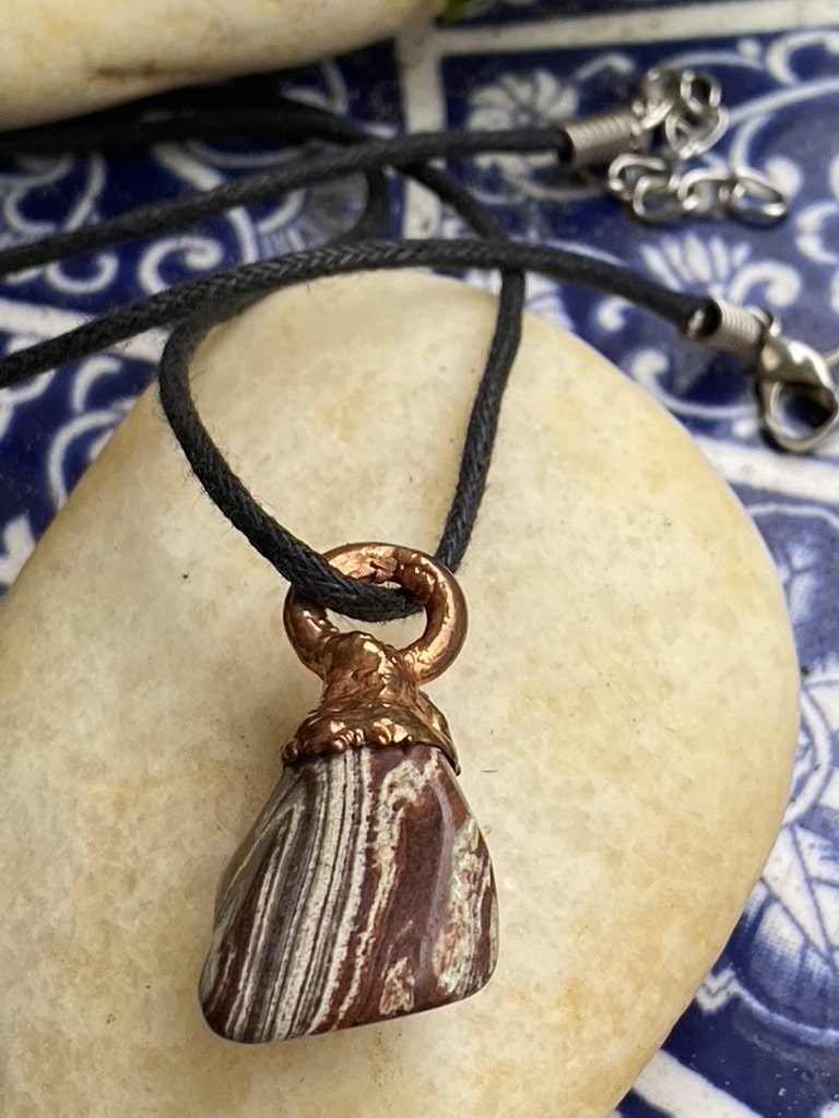 Statement-Making Electroformed Copper Zebra Jasper Gemstone Pendant