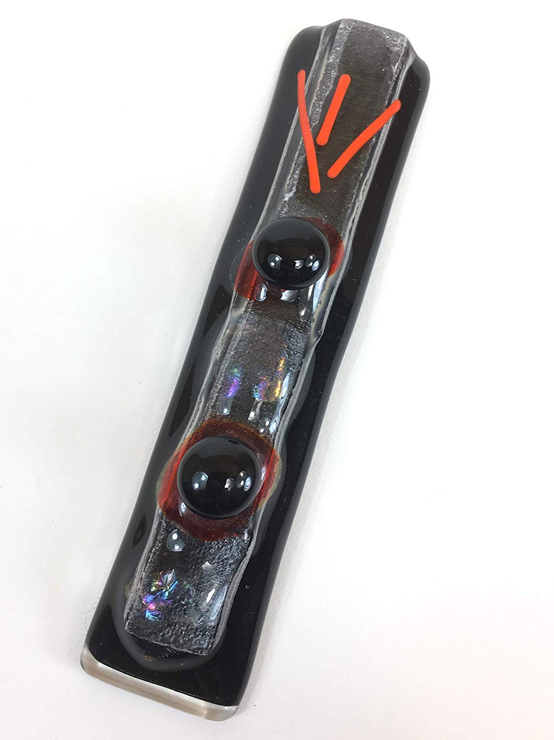 Fused Glass Mezuzah Case Designer Handmade Black Glass with Black/Orange and Red Glass Accents Orange Shin Great for Jewish Housewarming and Wedding Gifts a Non-Kosher Photo Copied scroll Included.