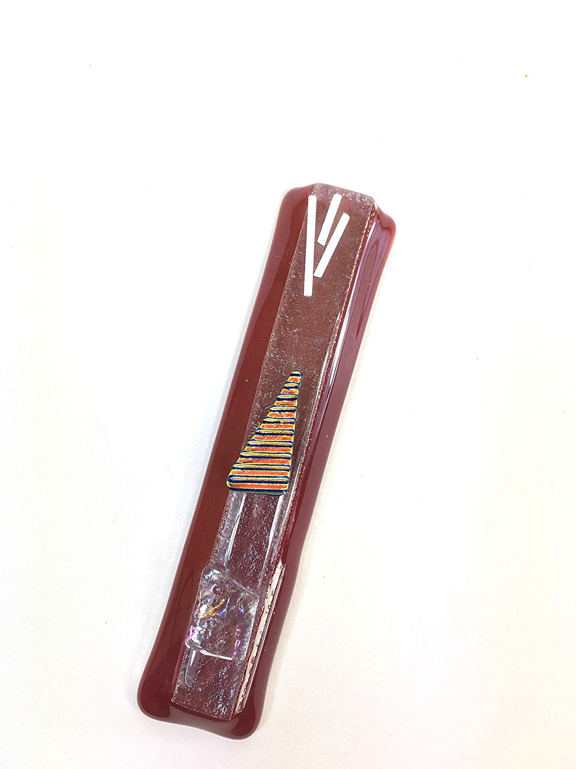 Be the first to review “Fused Glass Mezuzah Case Designer Handmade Dark Red with Teal Gold Dichroic Glass Accents White Shin Great for Jewish Housewarming and Wedding Gifts a Non-Kosher Photo Copied scroll Included.”